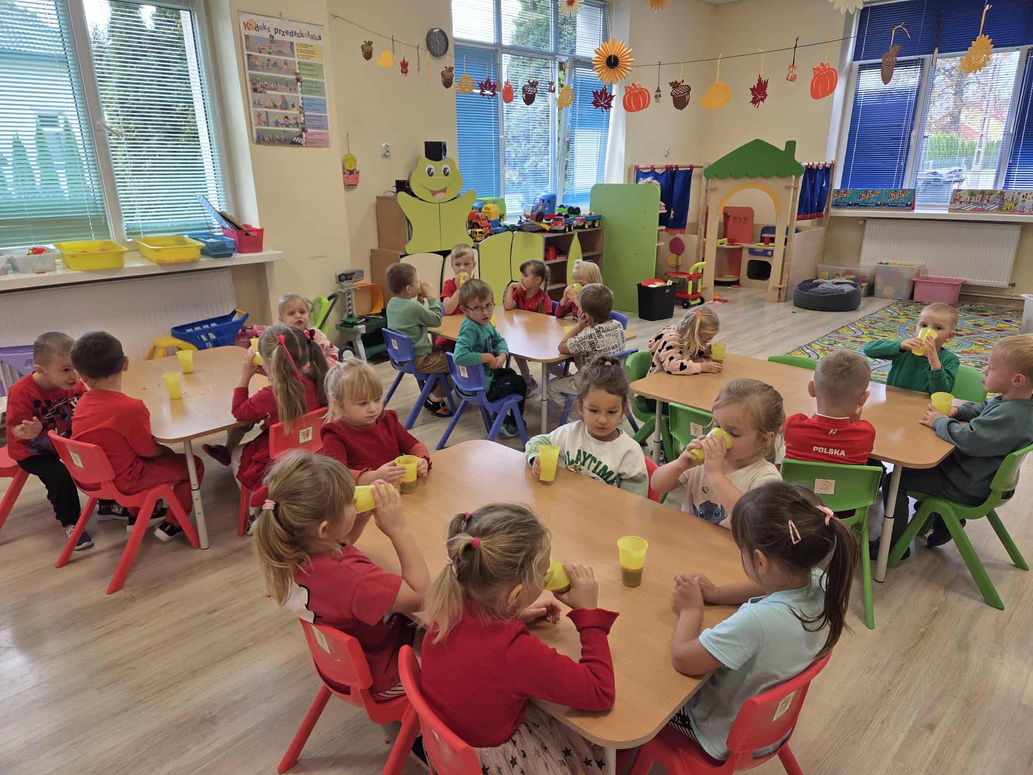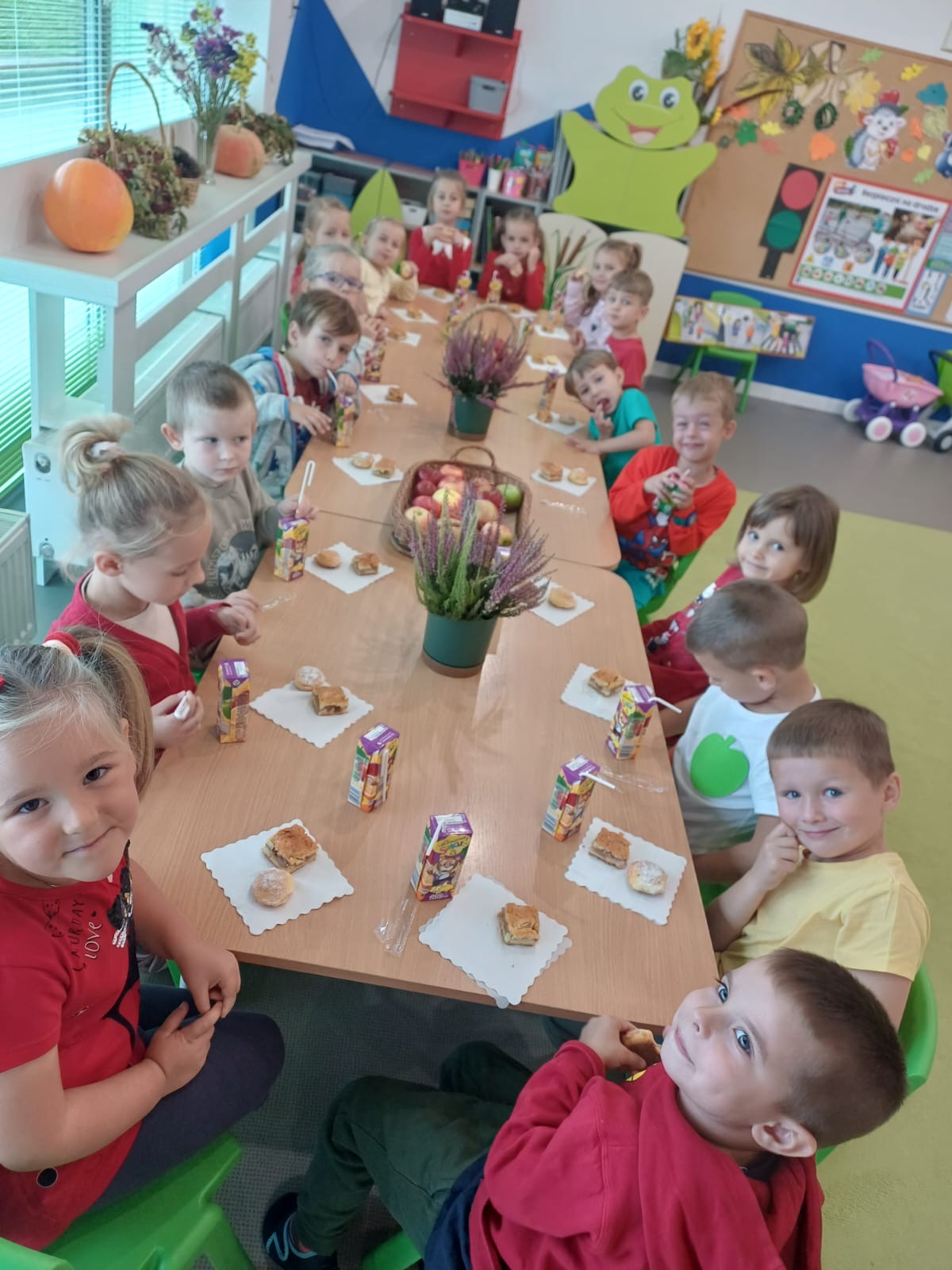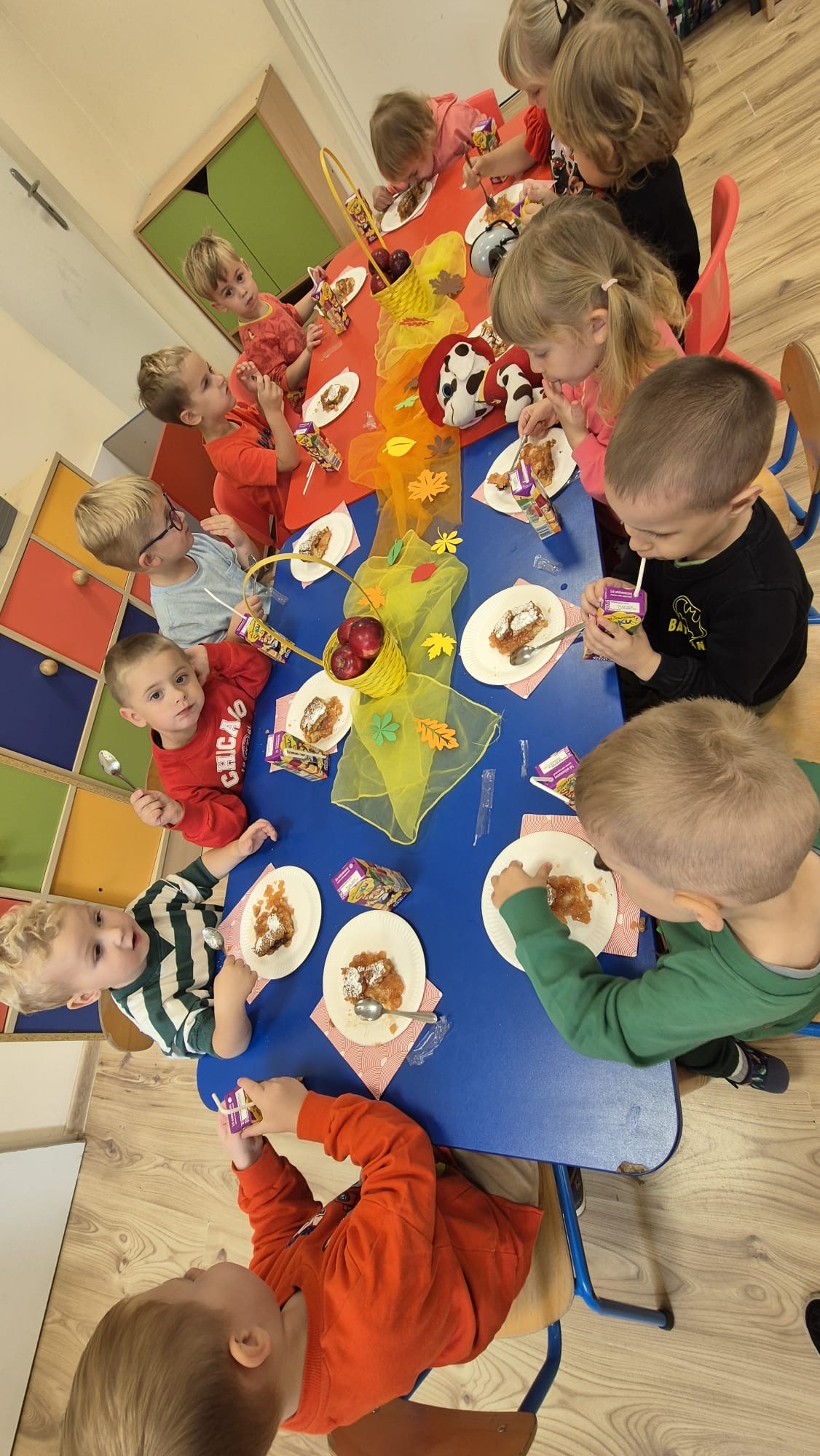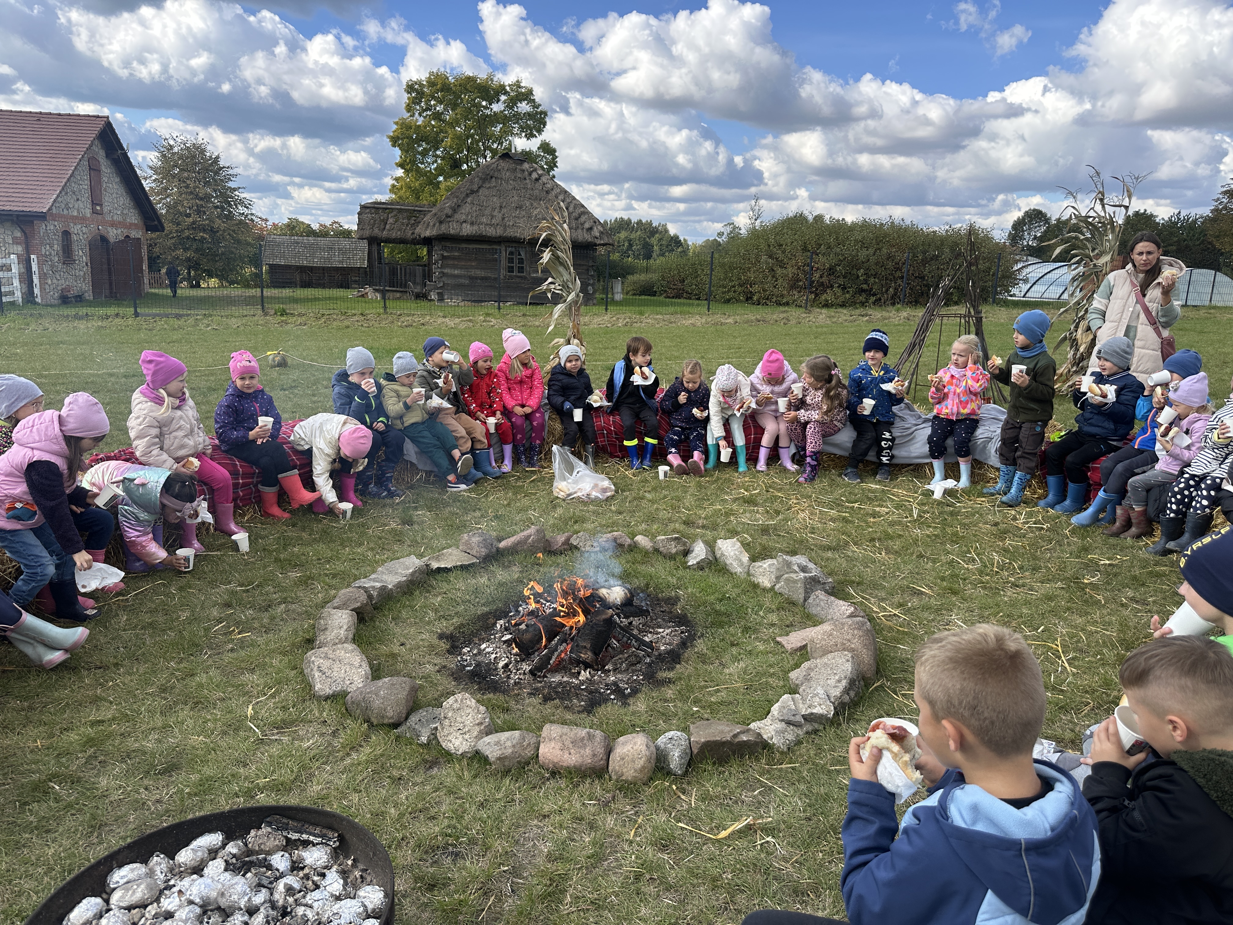 Motylki i Biedronki częstowały się pysznym pieczonym ziemniakiem, a Żabki i Sówki dodatkowo upiekły kiełbaski przy ognisku.
