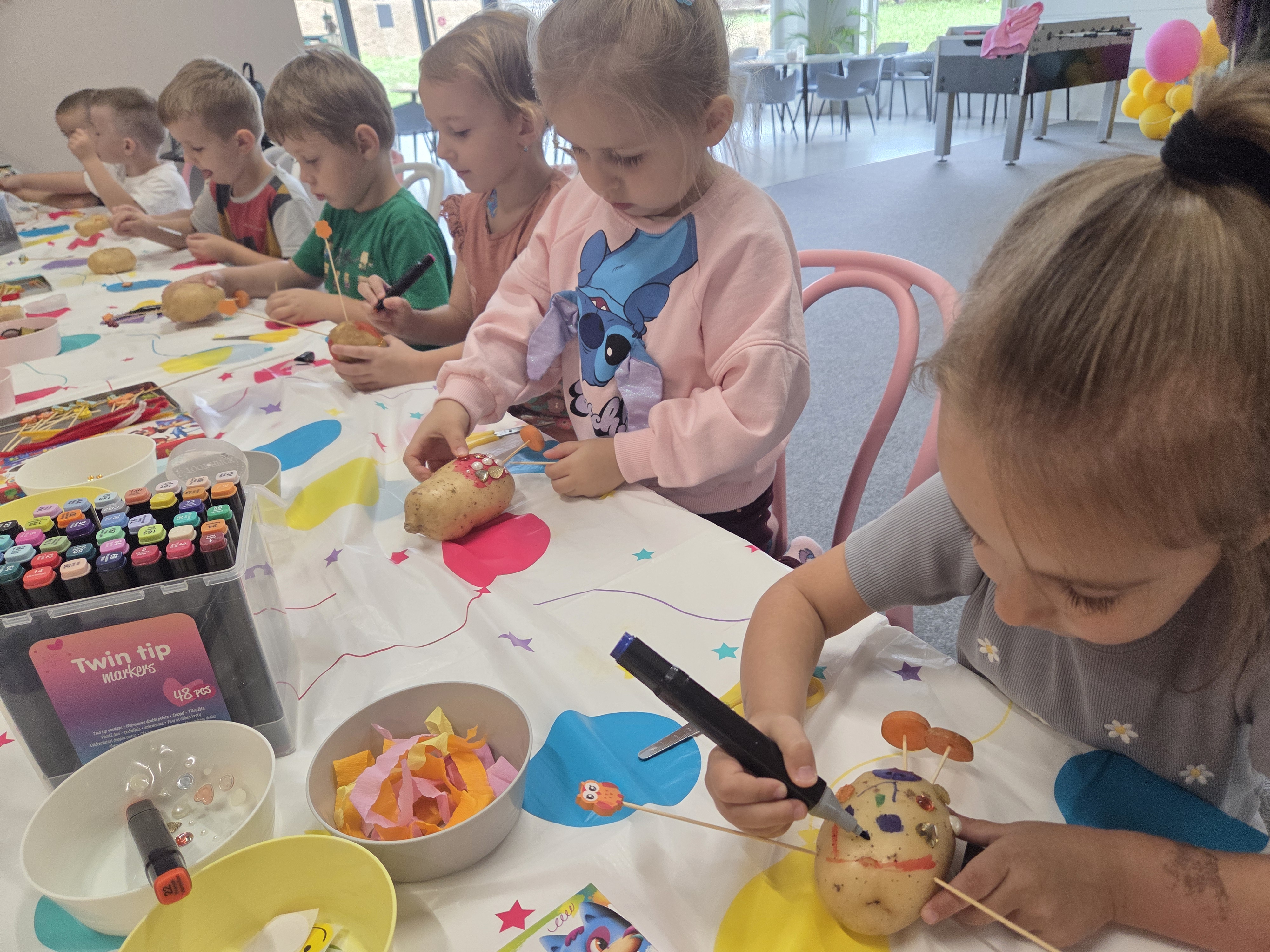 Na dzieci czekało mnóstwo atrakcji: zabawa na sali zabaw, kreatywne warsztaty ziemniaczane, spotkanie ze zwierzątkami w mini zoo i czas na świeżym powietrzu.
